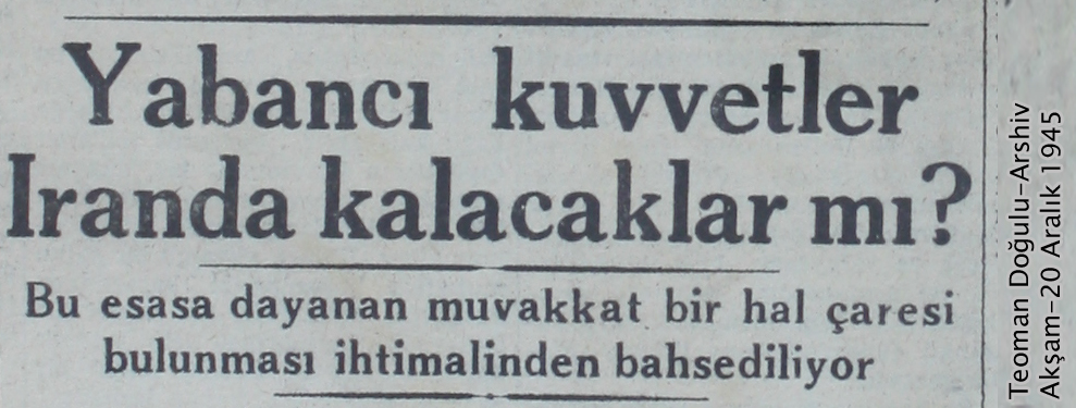 شماره روز پنجشنبه 20 دسامبر برابر با 29 آذرماه 1324، آکشام در تحلیل خود ، خروج نیروهای روس،انگلیس و آمریکا از ایران را بعید دانسته و می نویسد: وضعیت ایران به گونه ای است که تمامی توجه دنیا را به خود جلب نموده است. ایران به میدان رقابت قدرت های جهان بدل گشته است و مسئله ایران از این جهت اهمیت کسب نموده است. در حالیکه چگونگی حل این مسئله از سوی روسیه،آمریکا و انگلیس با نگرانی دنبال میشود نظر بعضی از محافل سیاسی بر این است که کشورهای اشغال کننده ایران بر سر راه حل موقت با یکدیگر به توافق برسند ؛ بنابراین بعید به نظر می رسد که نیروهای خارجی ایران را به این زودی ترک کنند.