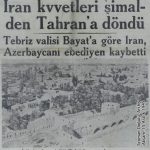 شماره روز شنبه پانزدهم دسامبر : نیروهای نظامی ایران به تهران بازگشتند/ از نظر بیات ایران آزربایجان را برای همیشه از دست داد