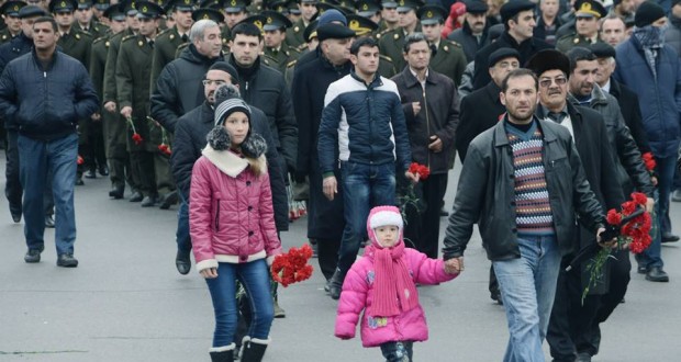 هزاران نفر از مردم باکو با حضور در مزار شهدای ۲۰ یانوار در این شهر سالگرد قیام این روز را سال ۱۹۹۰ گرامی داشتند. صبح دیروز همچنین الهام علی اوف رئیس جمهور آذربایجان شمالی همراه با اعضای هیئت دولت، سران ارتش و … با گذاشتن دسته گل یاد شهدای استقلال آزربایجان را گرامی داشتند .