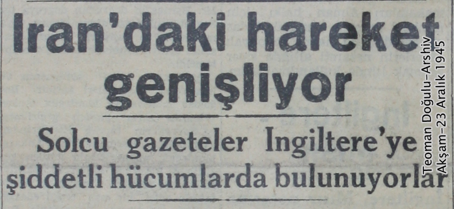 شماره روز سه شنبه 18 دسامبر برابر با 27 آذرماه 1324، روزنامه آکشام موضوع حکومت کردها را با “مسئله کرد” تعبیر و آن را مشکل ساز تر از مسئله آزربایجان بیان کرده و می نویسد : “آخرین خبرهای رسیده از ایران بر نگرانی ها می افزاید. بعد از مسئله ی آزربایجان اینبار مسئله کردها به میان آمده است. به نظر می رسد بنا به اقداماتی که از سوی کردها صورت می گیرد مسئله کرد در ایران به مراتب خطرناک تر از آزربایجان باشد.”
