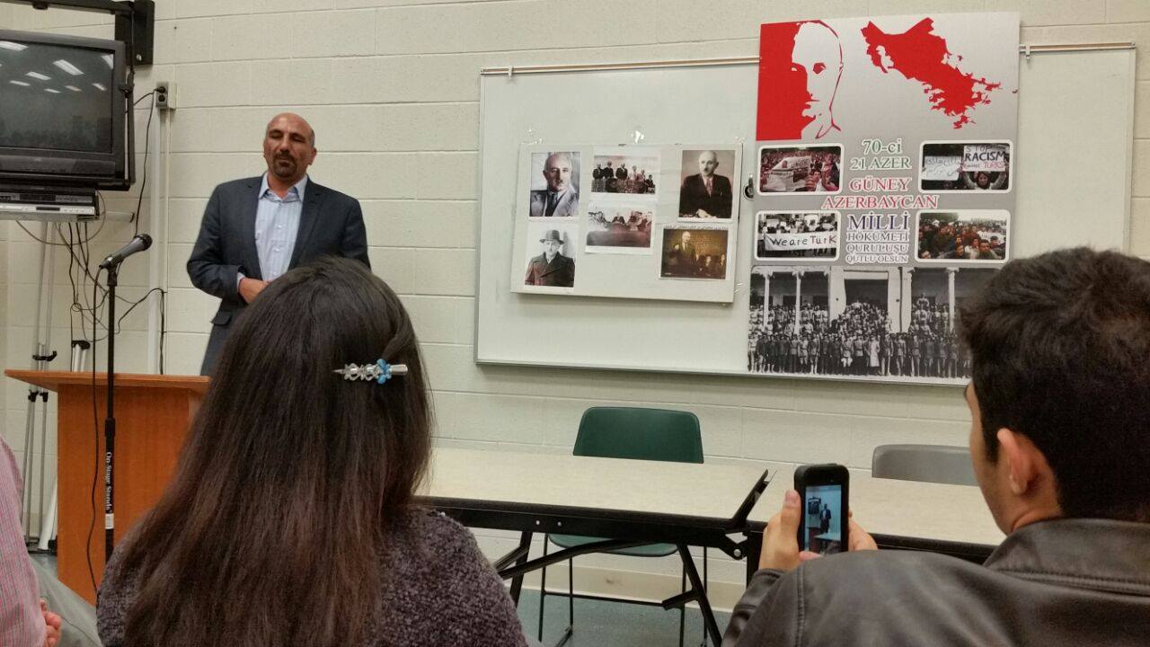به گزارش آرازنیوز, مراسم با یک دقیقه سکوت به احترام کشته شدگان سکوی نفتی "گونشلی" آزربایجان شمالی در دریای خزر بر اثر حادثه شروع شد. سپس مجری برنامه حبیب آذرسینا با اشاره کوتاه به حرکات ۲۱ آذر از بابک چلبیانلی جهت سخنرانی دعوت کردند. چلبیانلی روز ۲۱ آذر را بعنوان روز دولتمداری آزربایجان تبریک گفتند طی سخنان کوتاه اشاره اجمالی به شرایط تأسیس حکومت ملی و دستاوردهای آن در مدت زمان عمر ش خاطر نشان کرد که ملت آزربایجان به مدت یکسال آزادی , حس خوشبختی و زندگی شرافتمندانه را تجربه کردند. سخنگوی "تشکیلات مقاومت ملی آزربایجان" با اشاره به خدمات شایان توجه حکومت ملی آزربایجان علل شکست فرقه دمکرات آزربایجان را شرایط ایجابی بین المللی دانست. وی گفت : مسئله آزربایجان جنوبی اولین فدای تصمیم شورای امنیت تازه تاسیس شد. و از آن مهمتر یکی از علل دیگر شکست حکومت ملی عدم مقاومت سران حکومت ملی با تکیه بر مردم دانست. چلبیانلی افزود: "آنچه امروز مهم است تداوم راه پیشه وری است ما فعالین حرکت ملی آزربایجان این راه را تا رسیدن به اهداف عالیمان ادامه خواهیم داد."