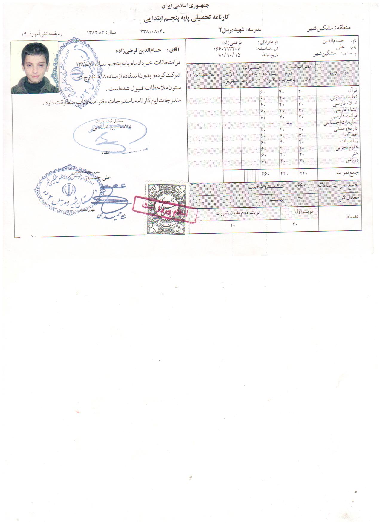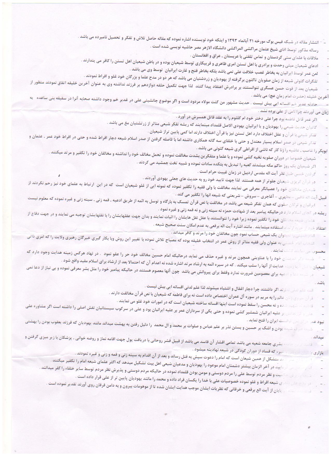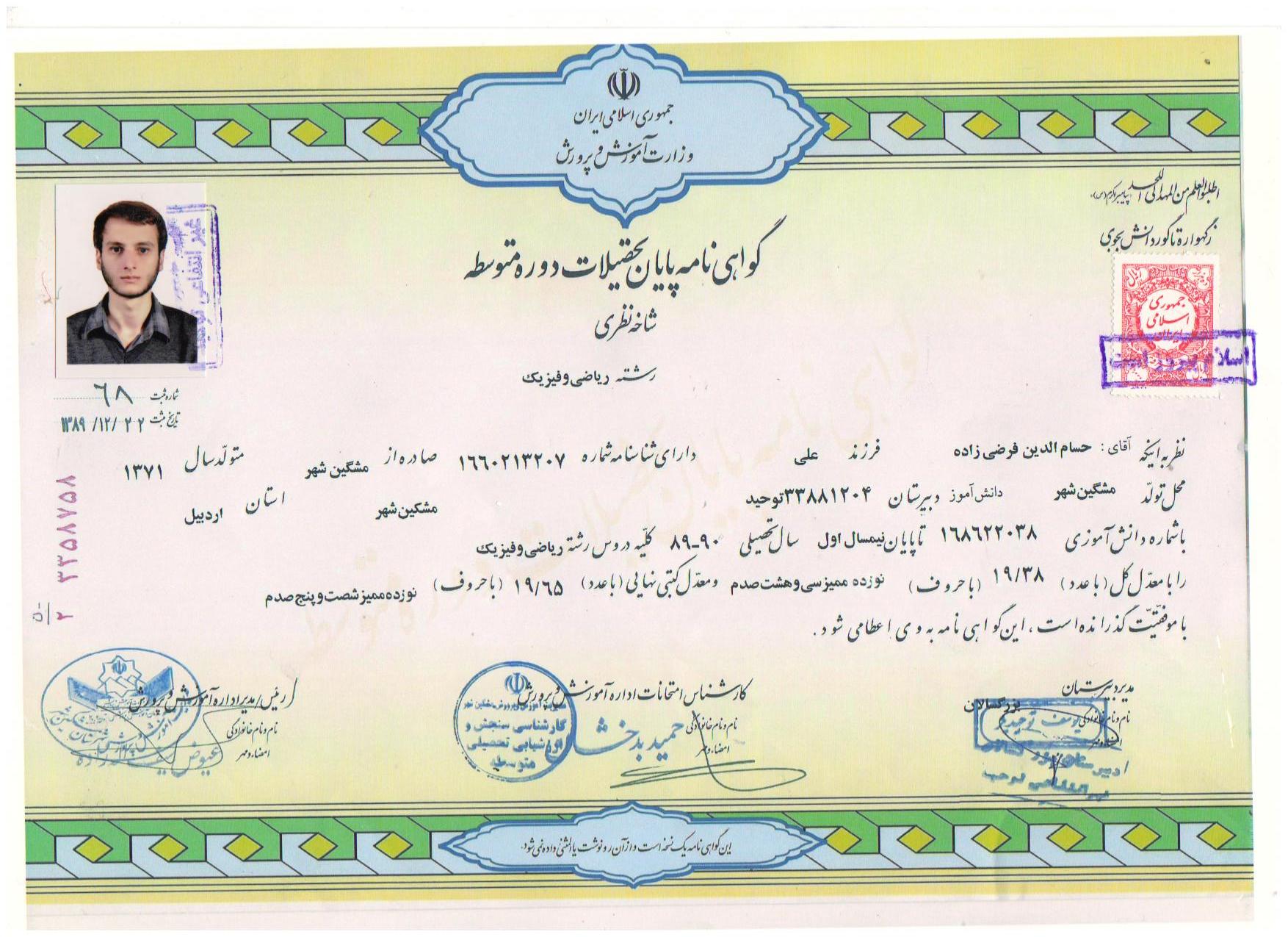 طبق این گزارش حسام الدین فرضی زاده دارای مقالات ISI در رشته فیزیک میباشد و همچنین دعوتنامهای از دانشگاه استنفورد دریافت کرده است. وی دوران تحصیل خود را با نمرات عالی گذرانده است که اخیرا با نوشتن کتابی در مورد اسلام و نشر عقاید خود محکوم به اعدام شده است. وی در دفاعیه خود در دادگاه مشکین شهر اظهار داشته که: «اتهامات را قبول ندارم زیرا هدف بنده از نوشتن کتاب ارائه نظر خود جهت نقد از طرف سایرین بود و مطالبی که بنده در کتاب مذکور نوشته ام همگی مطالبی مستند است که اینجانب گردآوری نمودم و سپس جهت نشر در فضای علمی اقدام به نشر آن نمودم تا تبادل فکر بنمایم.»