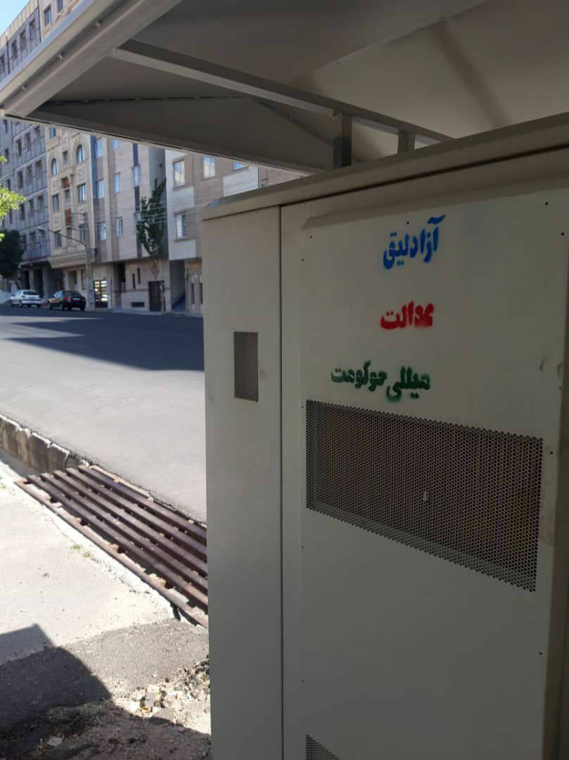 شعار استراتژیک فعالین ملی آزربایجان «آزادلیق، عدالت، میللی حوکومت» با رنگهای پرچم آزربایجان در خیابانهای تبریز نقش بست.