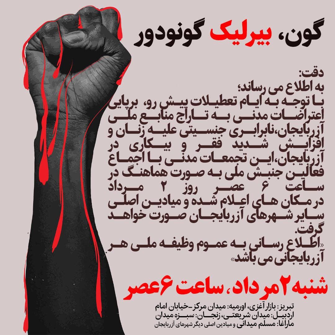 گون، بیرلیک گونودور: فراخوان دعوت به تجمع اعتراضی در شهرهای آزربایجان