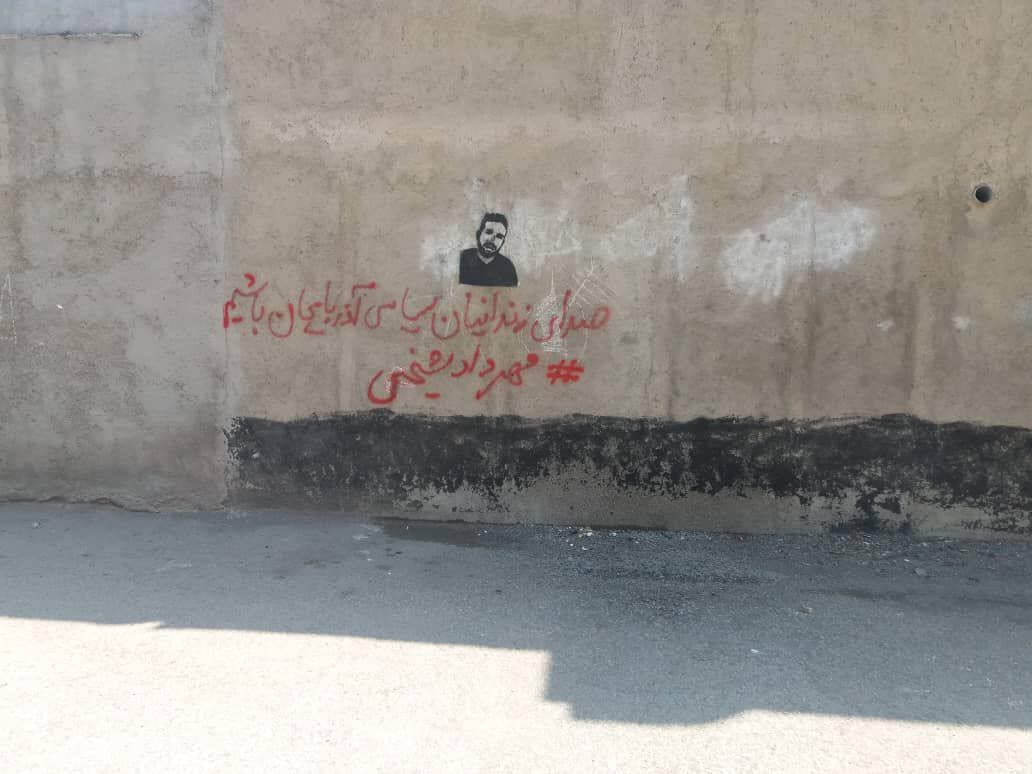 روز جمعه ۷ خرداد ماه ۱۴۰۰ فعالین ملی مدنی آذربایجانی در اردبیل با ثبت گرافیتی چهره مهرداد شیخی زندانی سیاسی آذربایجانی محبوس در بند سلامت زندان مرکزی اردبیل اعتراض خود را به مسئولین زندان نسبت به بازداشت ناعادلانه و سیاستهای اعمال شده در قبال این فعال آذربایجانی اعلام داشتند.