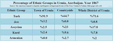 با بررسی این آمار معلوم میشود که در دوره مورد بحث تورکها نزدیک به ٩٢ درصد جمعیت شهر اورمیه و ۶۵ درصد پیرامون آن را تشکیل میدادهاند. بعد از تورکها ، بیشترین جمعیت را آسوری ها ، آنهم در حومه داشته اند نه کُردها.