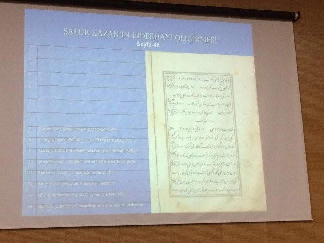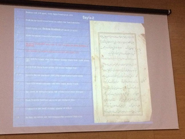 ائگه اونیوئرسیته سی تورک دونیاسی آراشدیرمالاری ائنستیتوسو تورک فولکلورو آنابیلیم دالی باشچی سی پروفسور دوکتور متین اکیجی، سمپوزیومدا اؤز دانیشیغیندا دده قورقودون ۳-جو نوسخهسینه عاید صفحه لری ده پایلاشدی.