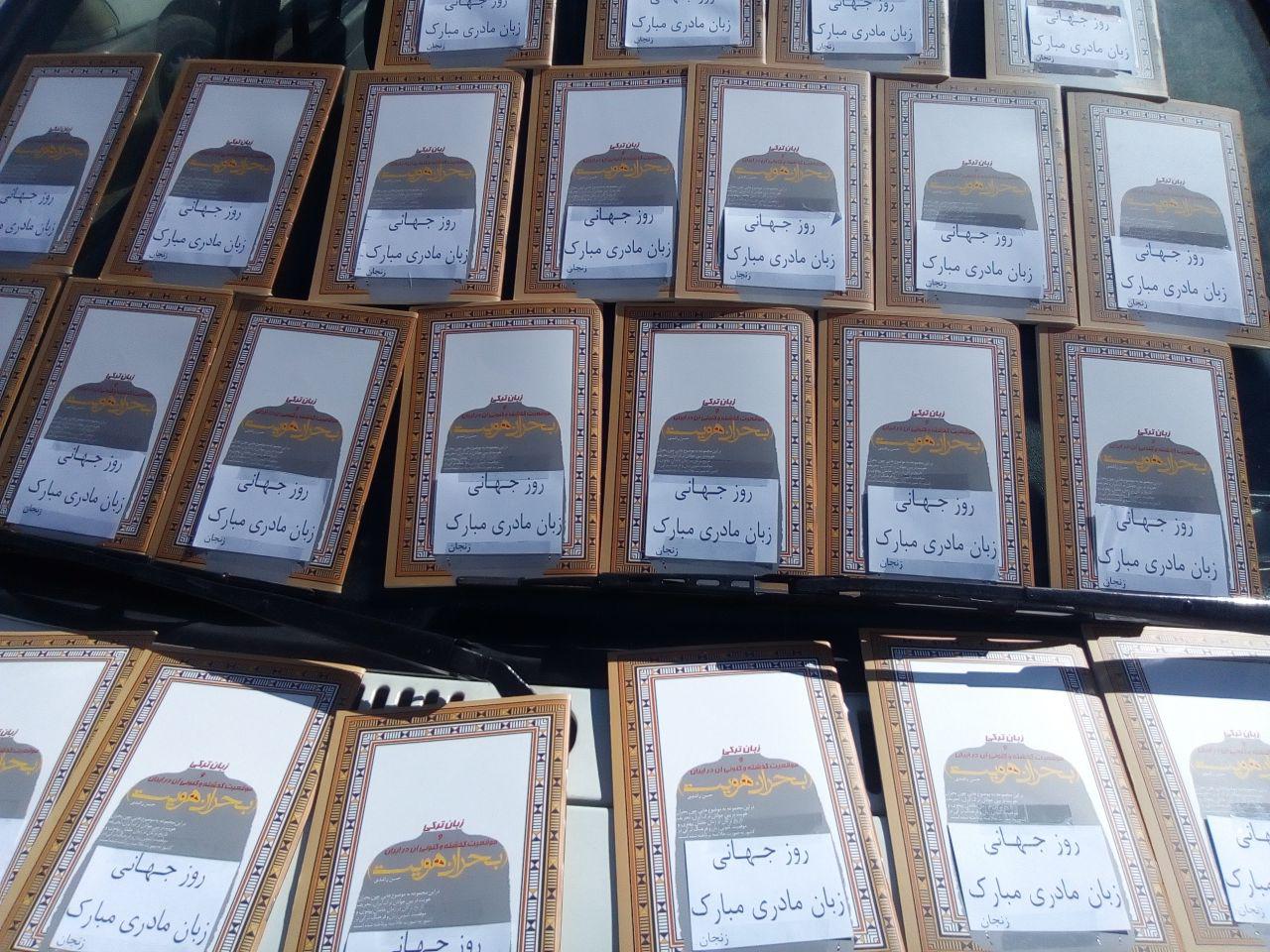 فعالین ملی آزربایجان در زنجان به مناسبت روز جهانی زبان مادری کتابهای «بحران هویت» و «بازگشت به هویت خویش» اثر مهندس حسن راشدی را در سطح شهر در بین مردم پخش کردند.