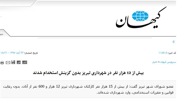 همچنین گفته میشود که آقای ایرج شهین باهر شهردار تبریز، افراد غیر بومی بسیاری را به بدنه شهرداری تبریز و سازمانهای مربوطه استخدام کرده است. به اذعان برخی از کارشناسان و مطلعان امر، تعدادی کارکنان شهرداری تبریز در ابتدای شهردار شدن آقای باهر با بیش از ۱۲هزار نفر، بسیار بیشتر از ظرفیت شهرداری تبریز بود که با استخدام نفرات جدید نزدیک به ۱۵هزار نفر نیز رسیده که استخدامی های جدید اغلب از افراد غیر بومی و مهاجر می باشند. از سوی دیگر آبان ماه سال گذشته فرج محمد قلی زاده یکی از اعضای شورای شهر تبریز در گفتگو با روزنامه کیهان گفته بود که «از بیش از ۱۵ هزار نفر کارکنان شهرداری تبریز ۱۲ هزار و ۶۰۰ نفر از آنان، بدون رعایت قوانین و مقررات استخدامی، وارد شهرداری شدهاند.»
