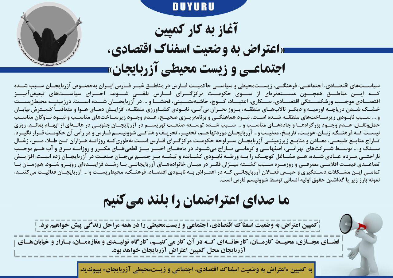 آغاز به کار کمپین «اعتراض به وضعیت اسفناک اقتصادی، اجتماعی و زیست محیطی آزربایجان»