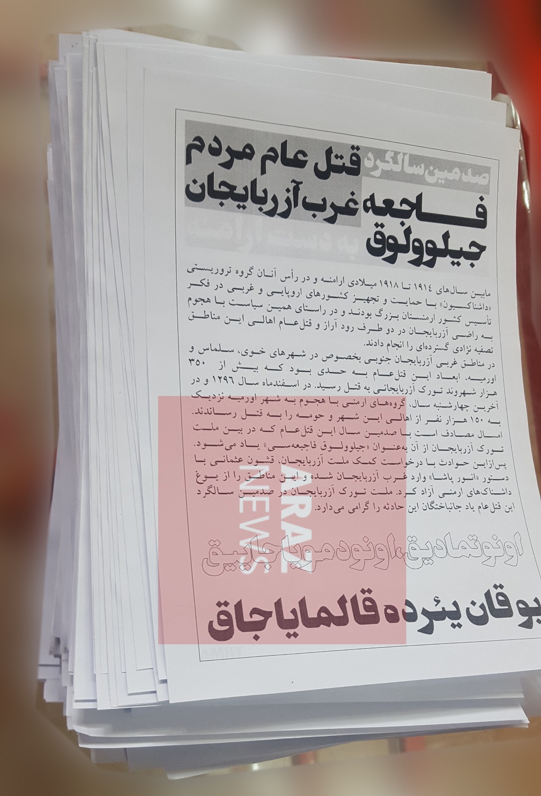 همزمان با فرار رسیدن صدمین سالگرد قتلعام مردم غرب آزربایجان به دست ارامنه، در شهرهای سلماس، خوی و اورمیه شبنامههایی در رابطه با این فاجعه پخش شد.