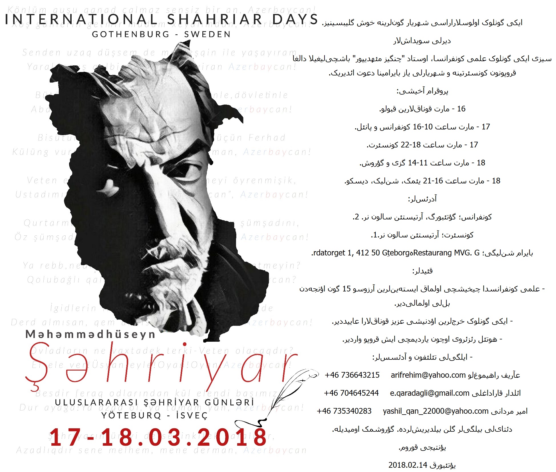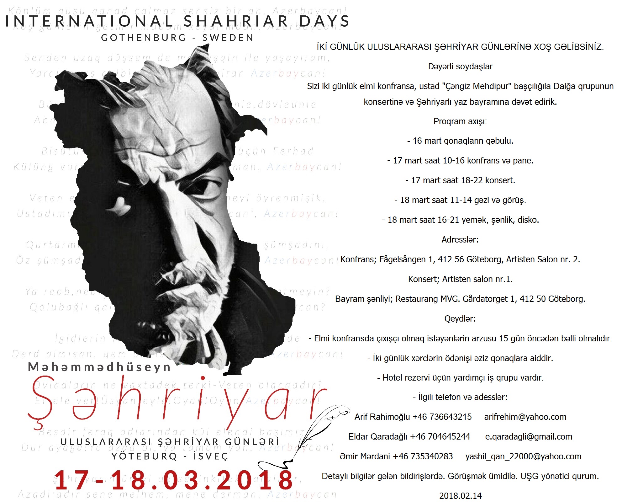 İKİ GÜNLÜK ULUSLARARASI ŞƏHRİYAR GÜNLƏRİNƏ XOŞ GƏLİBSİNİZ.
