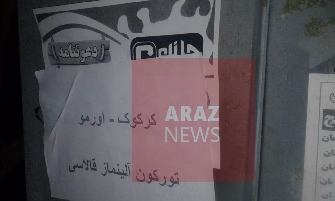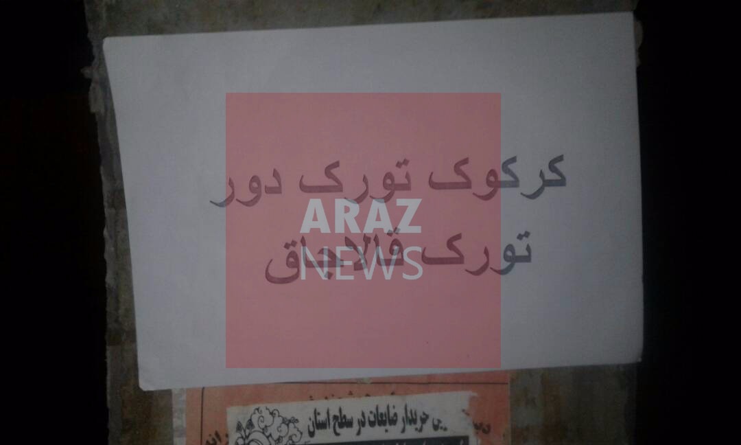 در چند روز گذشته علیرغم فضای امنیتی موجود در شهرهای آزربایجان جنوبی ، فعالین حرکت ملی آزربایجان با پخش تراکت و دیوارنویسی و نصب پرچم تورکمن های شمال عراق بر روی پلهای عابرین پیاده ضمن اعتراض به تصفیه نژادی صورت گرفته علیه برادران تورکمن خود حمایت قاطع خود را از تورکمن های شمال عراق اعلام نمودند.