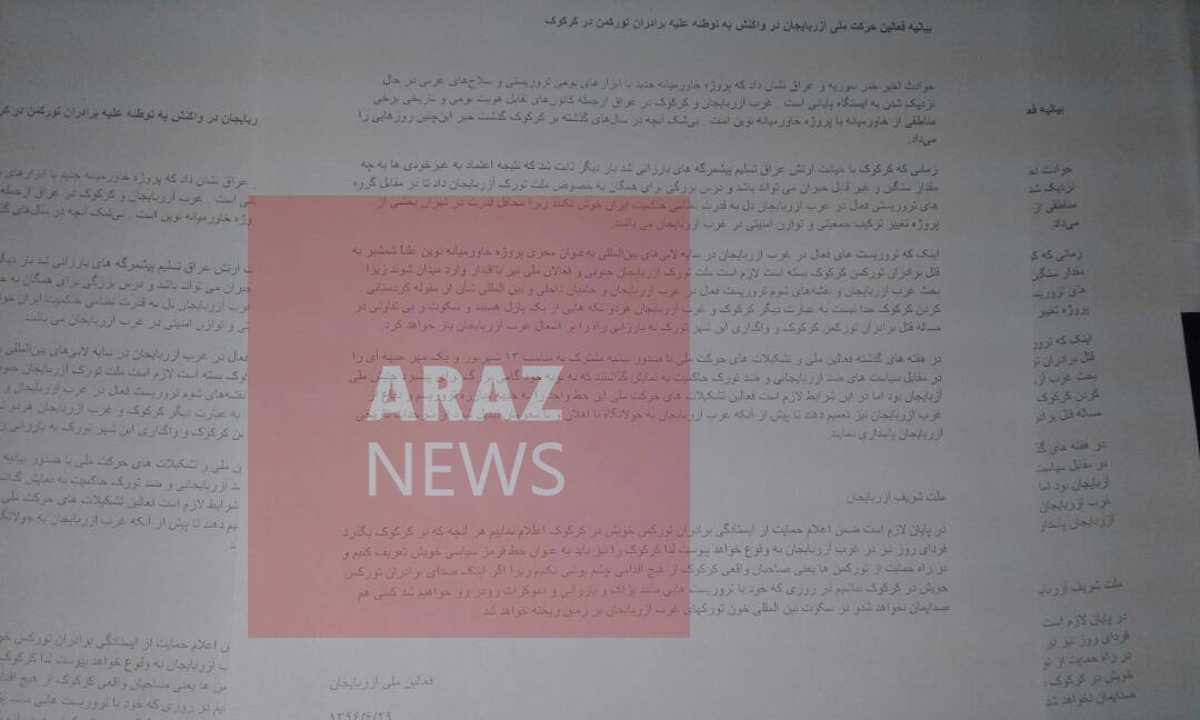 متن بیانیه منتشرشده توسط فعالین ملی آزربایجان :