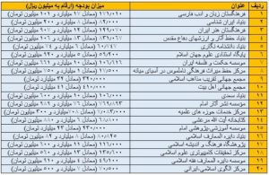 بنا به این متن، بودجه امسال نهادهای غیردولتی که دارای ردیف بودجه دولتی می باشند و میزان ارقام مندرج در جدول به میلیون ریال بوده است به قرار است: