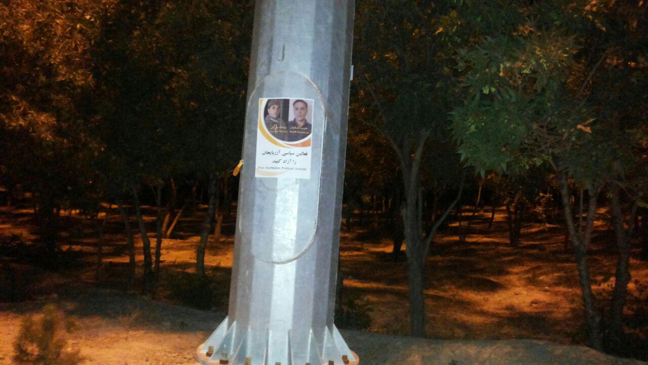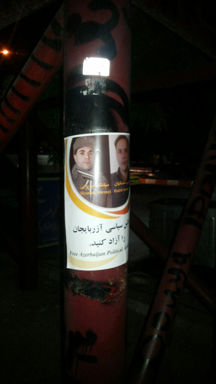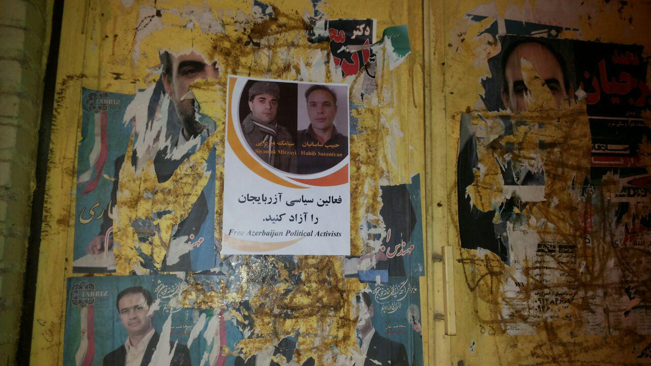 فعالین مدنی آزربایجان با نصب پوستر زندانیان سیاسی آزربایجانی خواهان آزادی بی قید و شرط زندانیان سیاسی آزربایجانی شدند. در این پوسترها تصویر دو تن از زندانیان سیاسی آزربایجان حبیب ساسانیان و سیامک میرزایی نقش بسته و روی آن نوشته فعالین آزربایجانی را آزاد کنید.