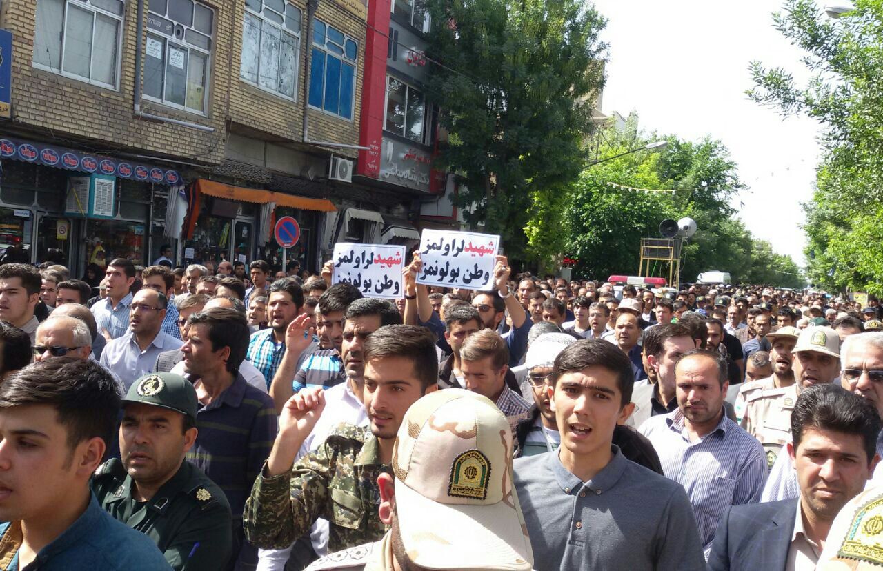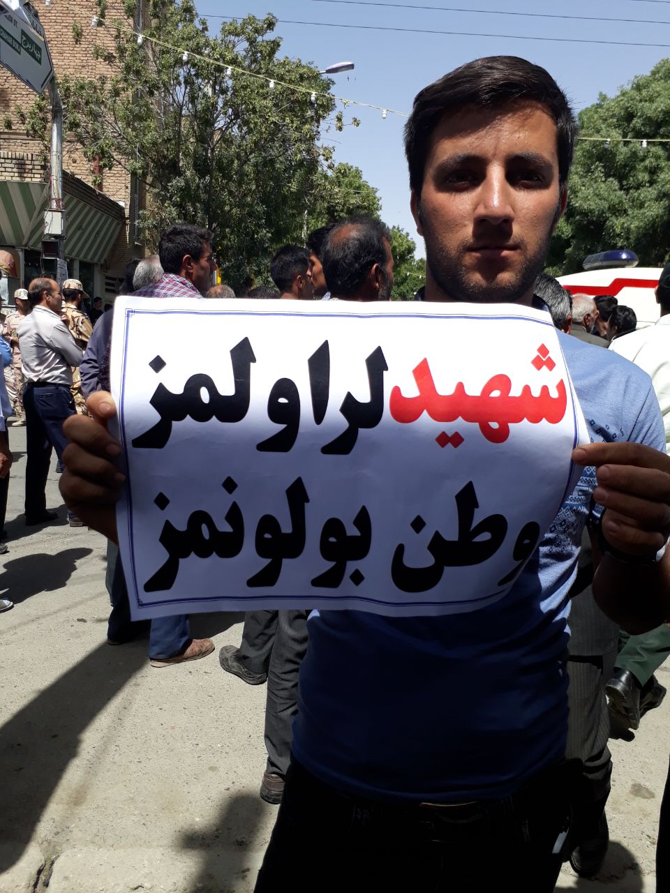 مردم حاضر در تشییع پیکر این شهید در شهرستان ملکان اقدامان تروریستهای پژاک را محکوم و شعار «شهیدلر اؤلمز - وطن بؤلونمز» سر داده و پلاکاردهایی با این مضمون در دست داشتند.