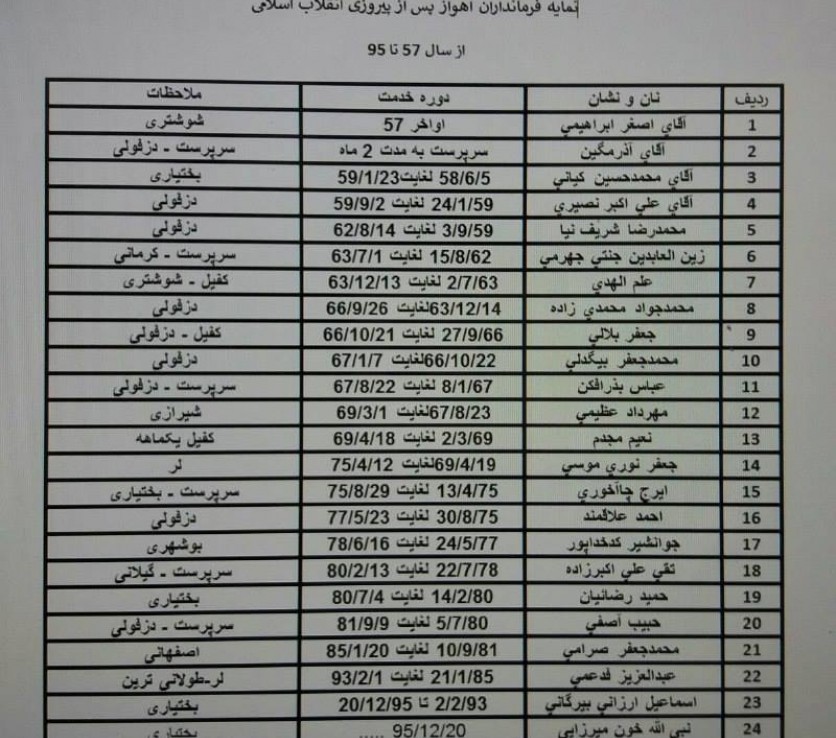 ب: لیست فرماندارن خوزستان