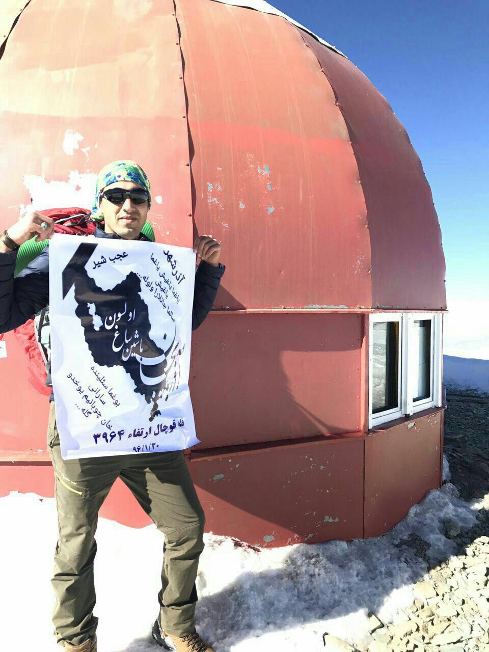 به گزارش آرازنیوز، رضا نصیری کوهنورد آزربایجانی شهروند کلیبر قله توچال به ارتفاع ۳۹۶۲ متر واقع در شمال تهران را برای همدری و تسلیت به جانباختگان سیل در شهرهای آذرشهر و عجبشیر، فتح کرد.