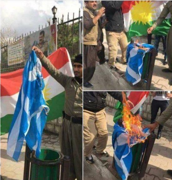در پی اعتراض تورکمانان کرکوک به اقدام غیرقانونی احزاب کردی در نصب پرچم کردستان در ادارات دولتی استان کرکوک، کردها در کرکوک در اقدامی نژادپرستانه پرچم تورکمانان کرکوک را به آتش کشیدند.