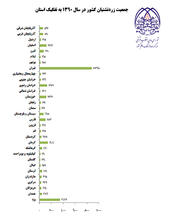 جمعیت زرتشتیان ایران به تفکیک استان: