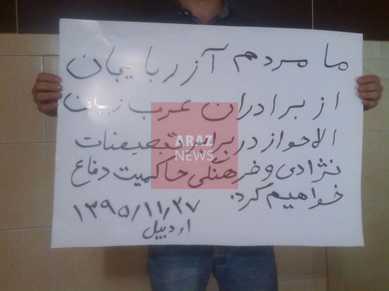 با ادامه اعتراضات مدنی ملت عرب در اقلیم الاحواز جوانان و فعالین حرکت ملی آزربایجان به روشهای مختلف حمایت خود از مطالبات و اعتراضات ملت عرب بیان می کنند.
