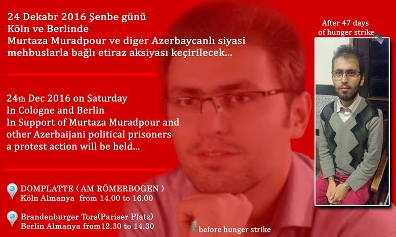 همچنین جمعی از فعالان ملی و سیاسی آزربایجانی مقیم آلمان تجمع اعتراضی در حمایت از مرتضی مرادپور و سایر زندانیان سیاسی آزربایجان جنوبی برگزار خواهند کرد.