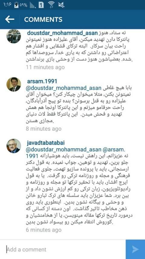 نوشته های توهین آمیز نژادپرستان حکایت از حقیقتی دارد که آنان را به واکنش واداشته است؛ حکایت مساله تورکان در ایران یعنی مردمانی که نمی خواهند زیر سلطه نژادی و تحقیر زندگی کنند و به شعور ملی رسیده اند و این که نگهبان و آگاه به هویت ملی هستند. هویتی که برآمده از تاریخ، فرهنگ و زبان تورکی است و همه جعلیات و تحریفات و انکارها را پس می زنند.