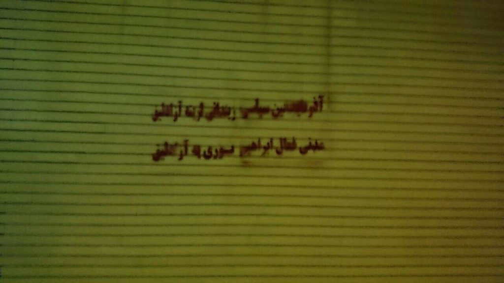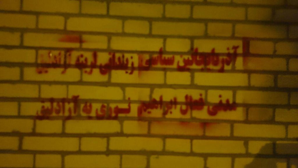 دیوارنویسی در اهر برای آزادی «ابراهیم نوری» فعال ملی آزربایجان