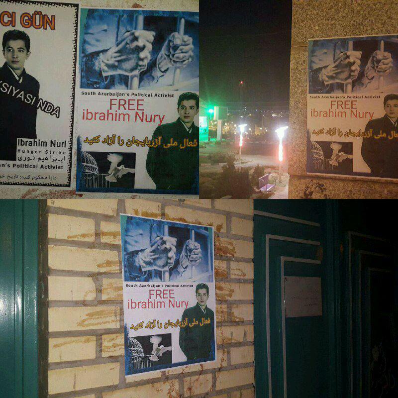 برای آزادی ابراهیم نوری فعال ملی آزربایجان ، پوسترهایی در نقاط مختلف شهر نصب و دیوارنویسی گستردهای صورت گرفت.