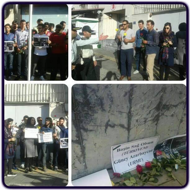 مردم بعد از تجمع آرام در مقابل کنسولگری ترکیه در اورمیه، با گذاشتن شاخه گلهای سرخ مقابل درب کنسولگری، تروریسم را محکوم کردند.