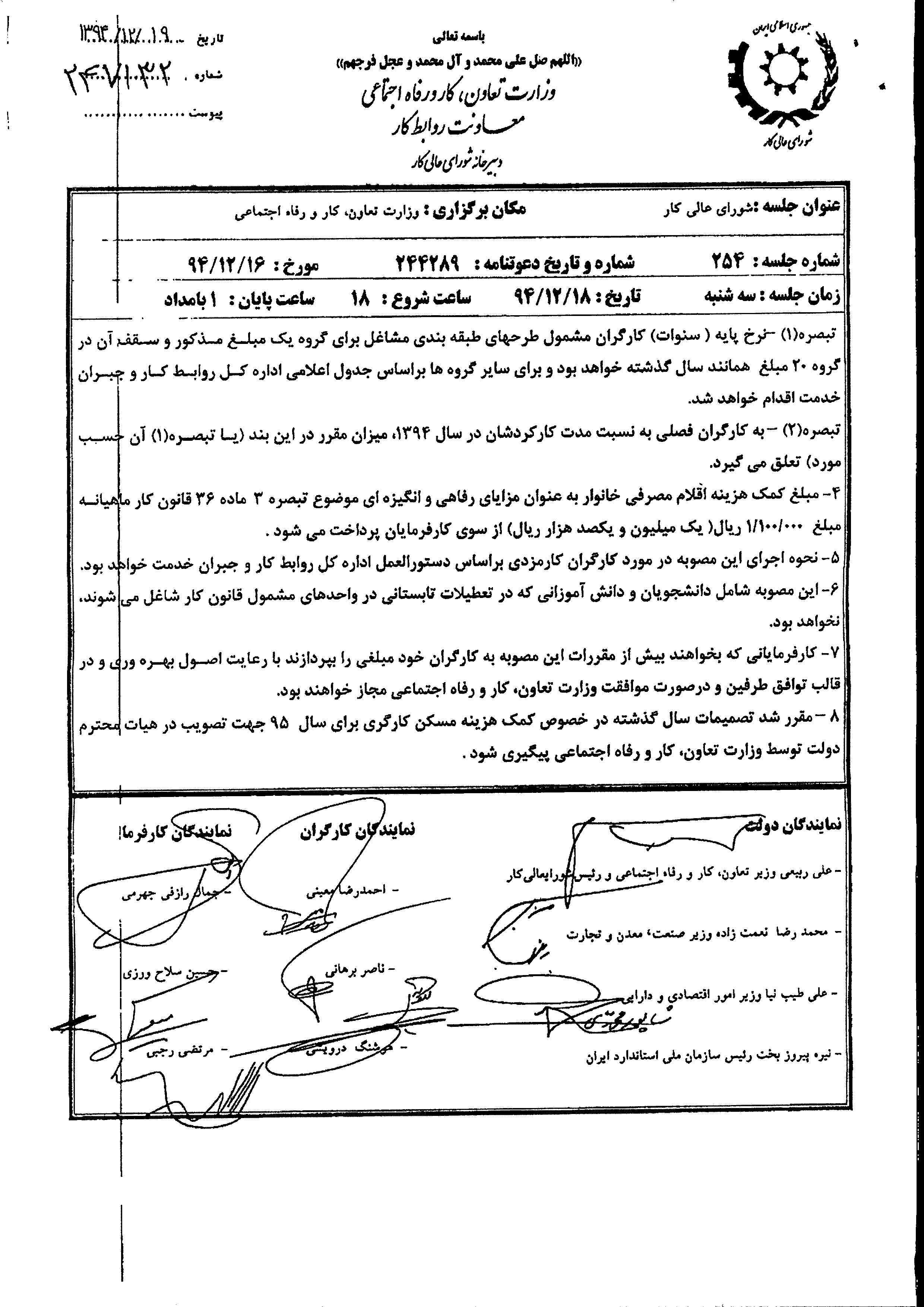 به گزارش آراز نیوز به نقل از دویچه وله، اعضای شورای عالی کار، متشکل از نمایندگان دولت، کارفرمایان و برخی تشکلهای صنفی کارگری پس از ۸ ساعت بحث و چانهزنی بامداد امروز (چهارشنبه ۱۹ اسفند) بر سر میزان افزایش حداقل دستمزد کارگران به توافق رسیدند.